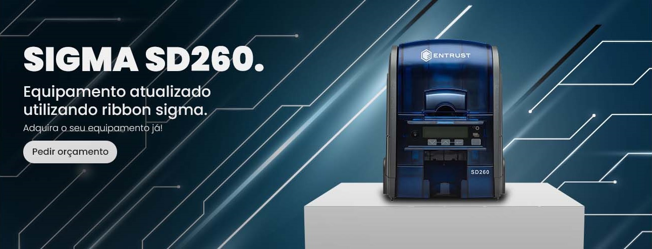 A Impressora de cartão Sigma DSE Simplex imprime frente e verso MANUALMENTE, tem conexão USB, opcionais tarja magnética, e smart card.